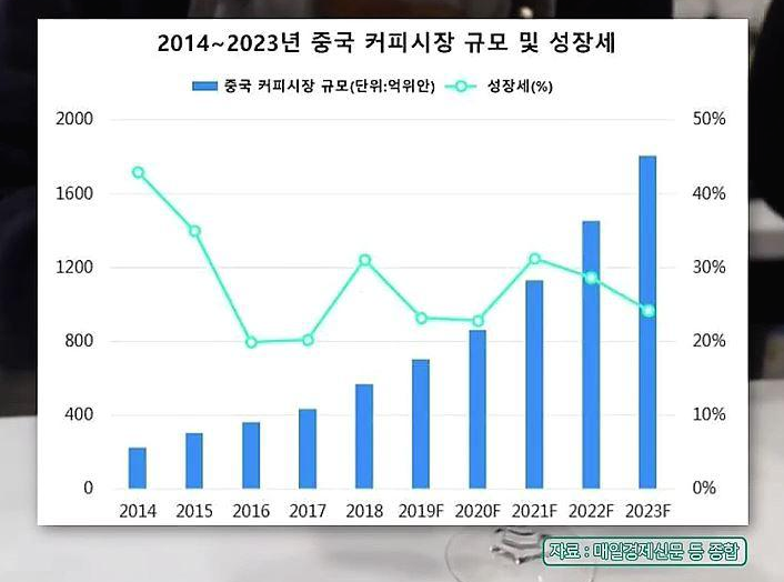 자료출처 : 위클리차이나우 국가별 커피 시장 규모 (자료 : 유로모니터)